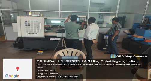 6. A new CNC lathe machine was installed in the Centre of Excellence in Manufacturing and Automation at OP Jindal University, Raigarh 09/10/2023. CNC machines are instrumental in modern manufacturing and various industries due to their precision, efficiency, and versatility. They offer significant advantages in productivity, cost savings, and quality control, making them a cornerstone of advanced manufacturing processes. It can be used for research, consultancy and training purposes.
