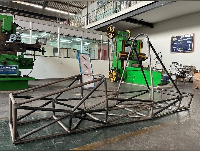 13. OP Jindal University student's team "VIDYUT" under the aegis of SAE India Collegiate Club is working extensively on their Formula One car project “VAYU”. The team has completed the designing and fabrication part of Chassis. The team members are really excited to participate in the formula contest SAE-SUPRA which is scheduled to be held during July 2022 at Buddh International Circuit, Greater Noida. Last year, OPJU was the only University from Chhattisgarh to participate in this event.
