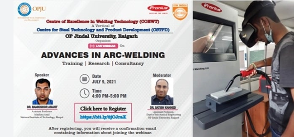 OP Jindal University in association with centre of Excellence in Welding Technology (A vertical of Centre for Sustainable Technology & Product Development) has organised an interactive webinar titled as "Advances in Arc Welding" on 9th July at 4 PM.