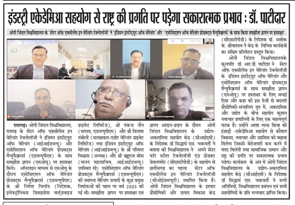 The Centre of Excellence in Welding Technology (COEWT), a vertical of the Centre for Steel Technology and Product Development (#CSTPD), #OPJindalUniversity has signed an MoU with Association of Welding Products Manufacturers (AWPM) today. The MoU will help the OPJU and Mechanical students in terms of their Training, Placement, Paid and Unpaid Long Term Internships , and Industry Expert Lectures.