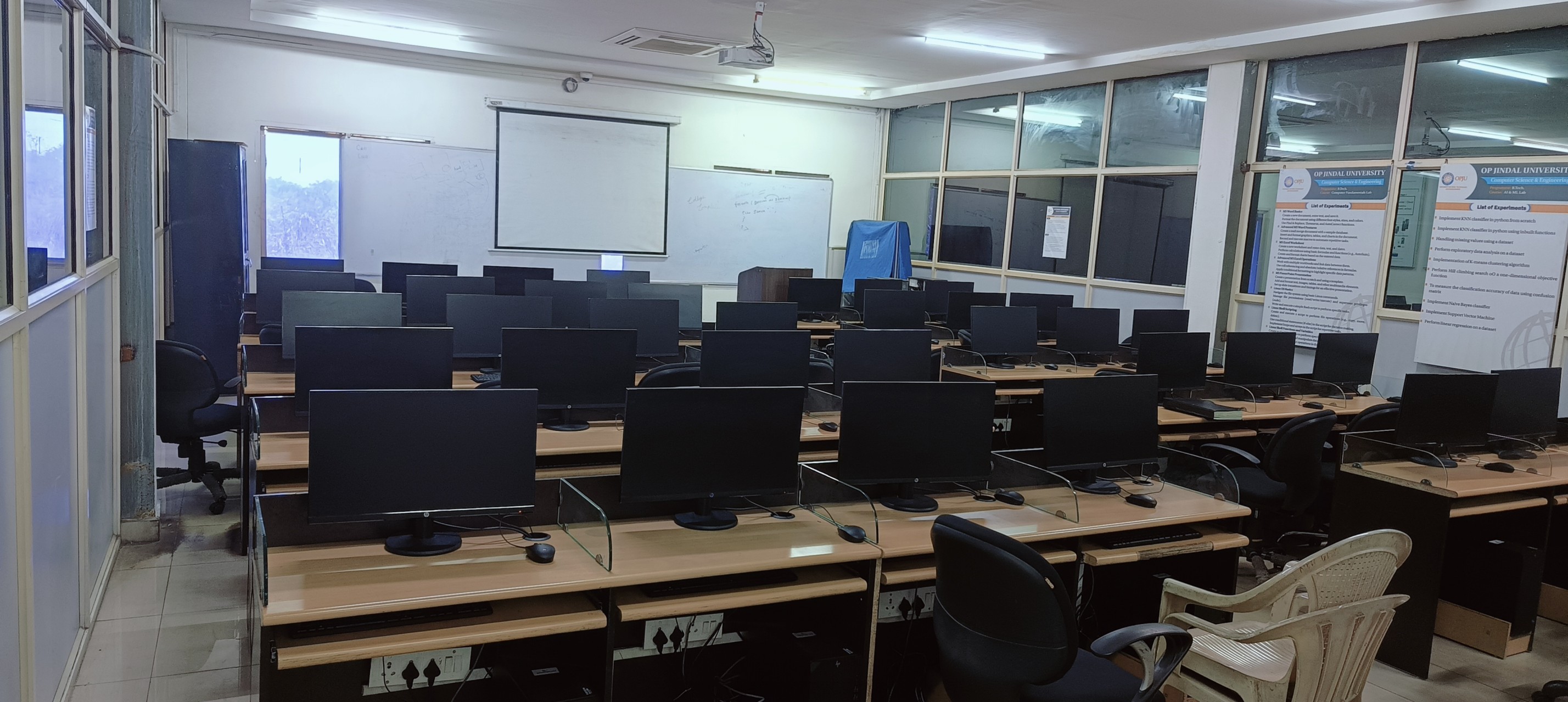 The AI & ML Lab is designed to equip students with practical skills and knowledge to implement intelligent systems and machine learning algorithms. It provides a hands-on learning environment to explore the foundations of artificial intelligence, including data processing, algorithm design, and the application of machine learning models in solving real-world problems. The AI section is dedicated to implementing AI models and algorithms such as Machine Learning, Deep Learning, and Natural Language Processing. Students work with frameworks like TensorFlow, PyTorch, and Scikit-learn, gaining insights into real-world AI applications such as computer vision, robotics, and data-driven decision-making.