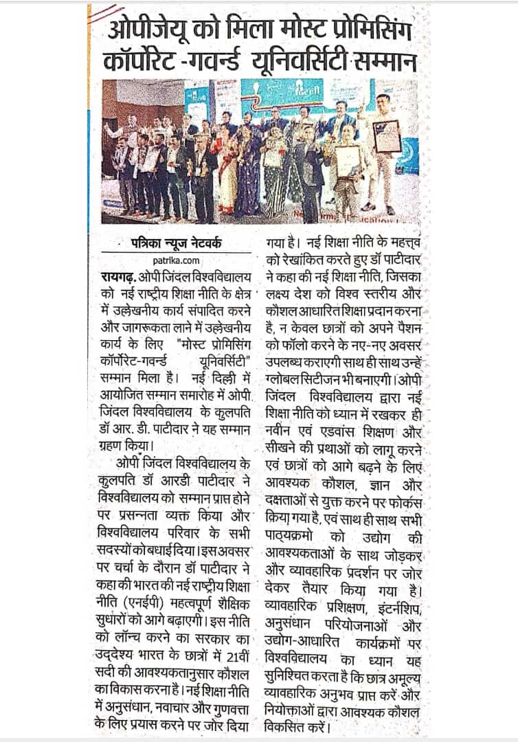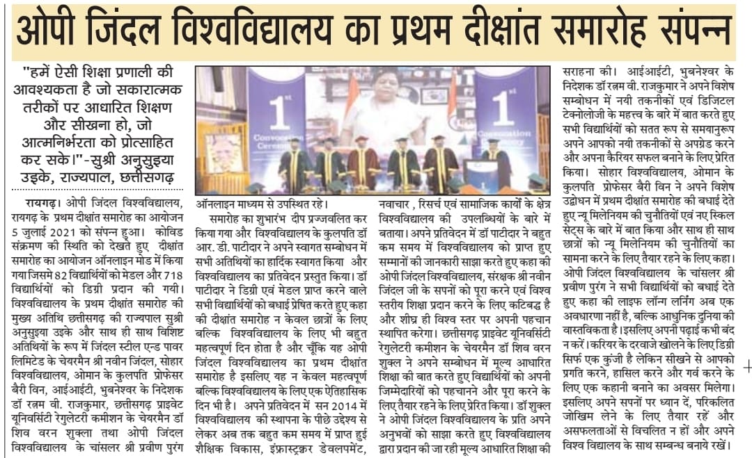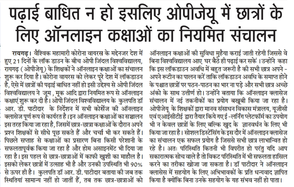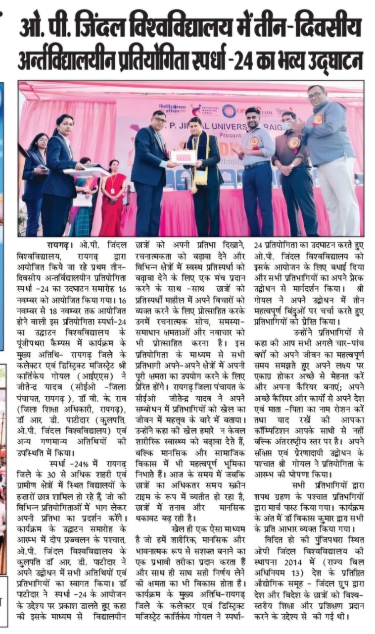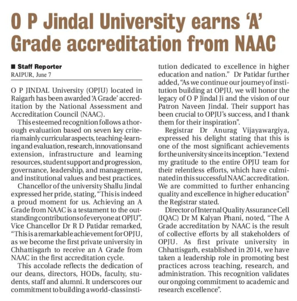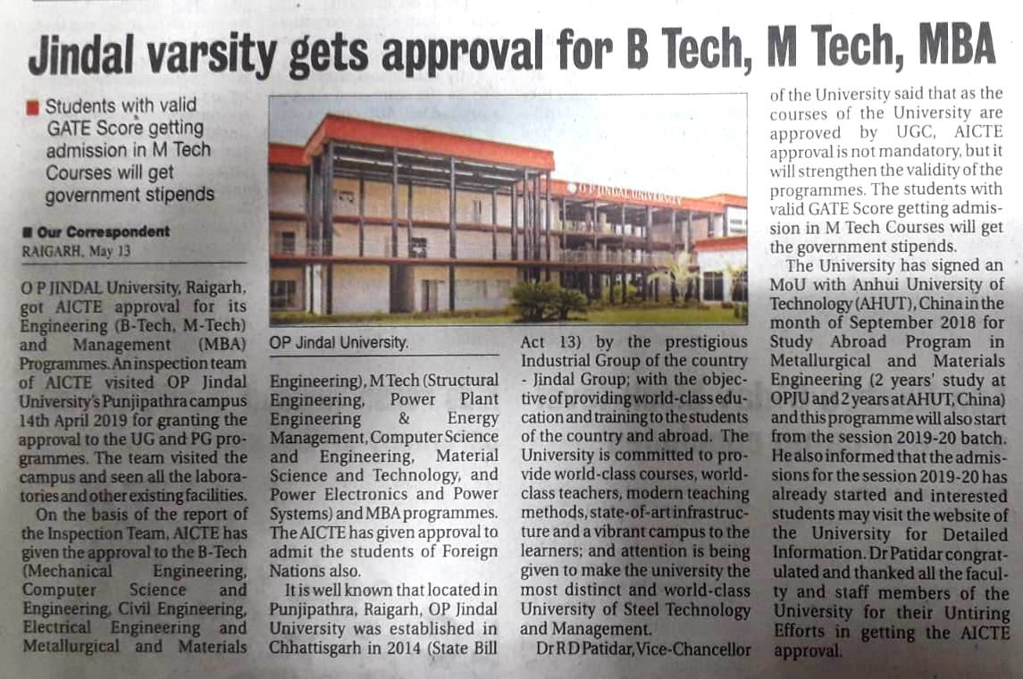 OPJU GETTING THE AICTE APPROVAL HITAVADA,