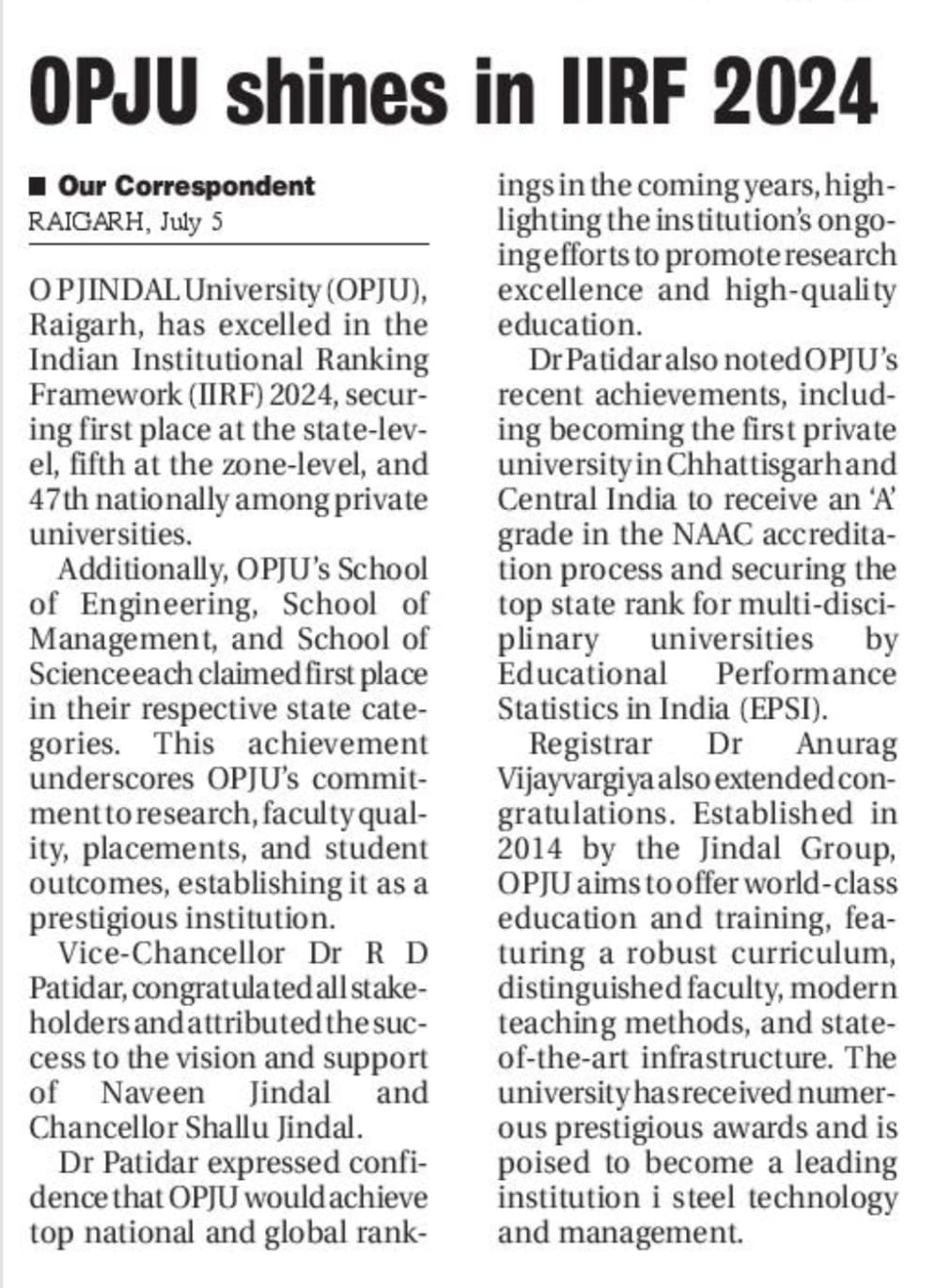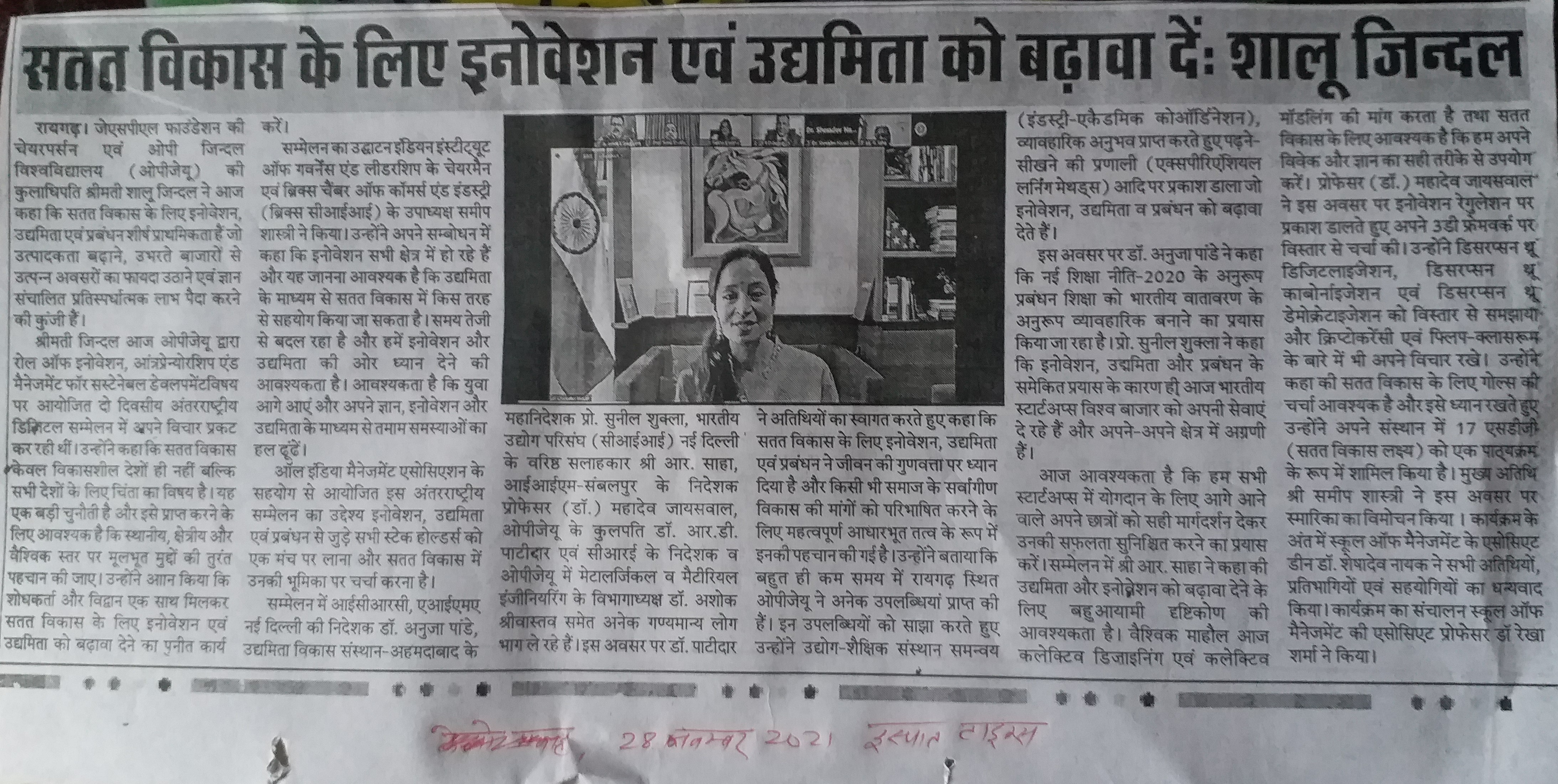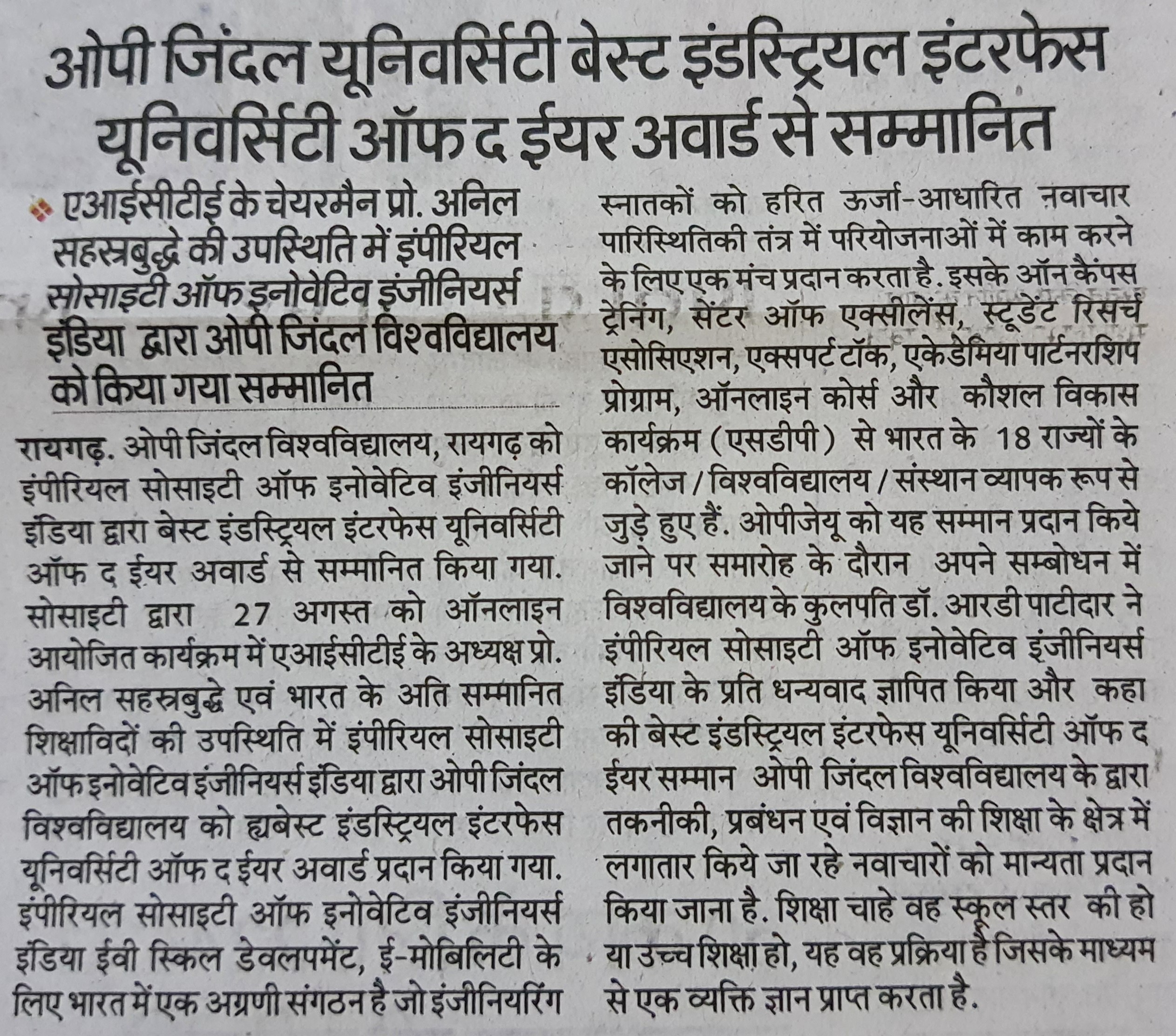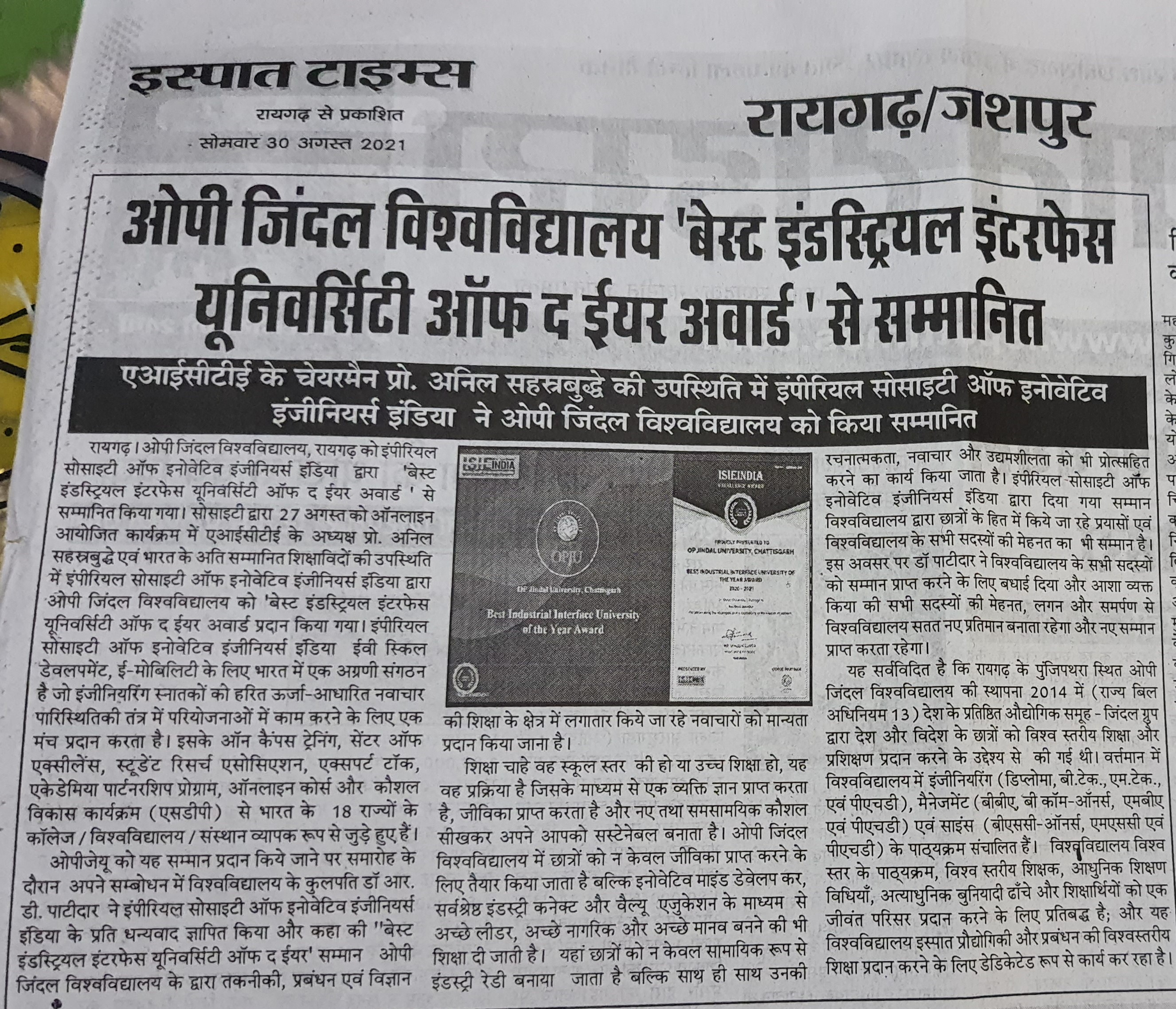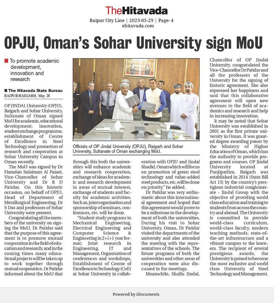 OPJU GETTING THE AICTE APPROVAL HITAVADA,