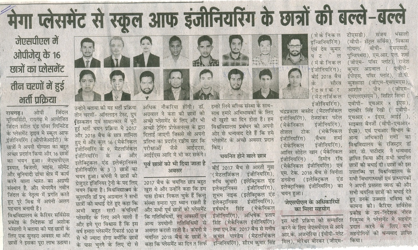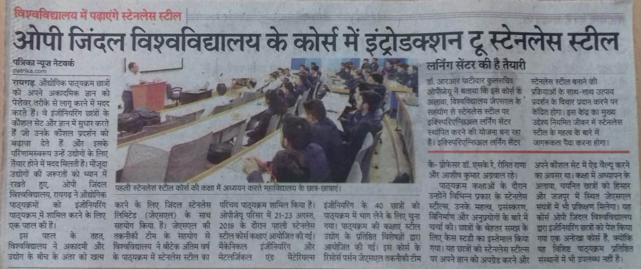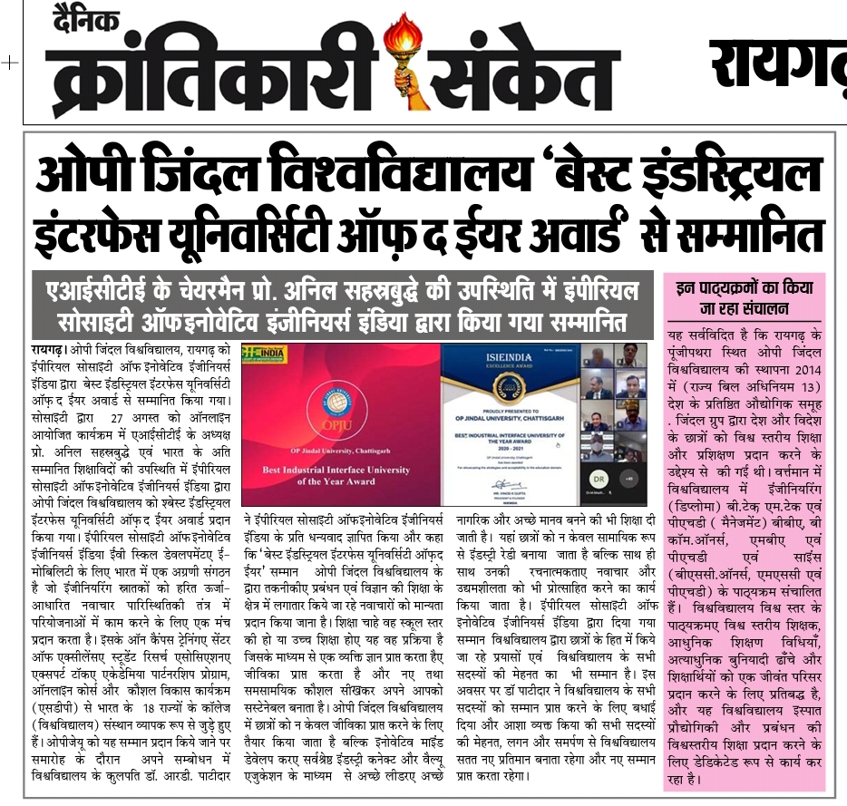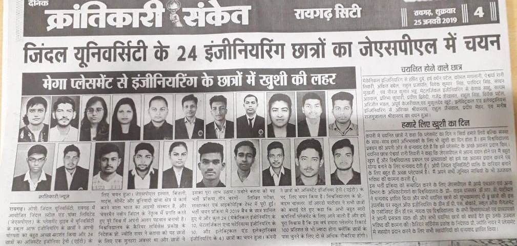 24 ENGINEERING STUDENTS OF JINDAL UNIVERSITY SELECTED IN JSPL KRANTIKARI,