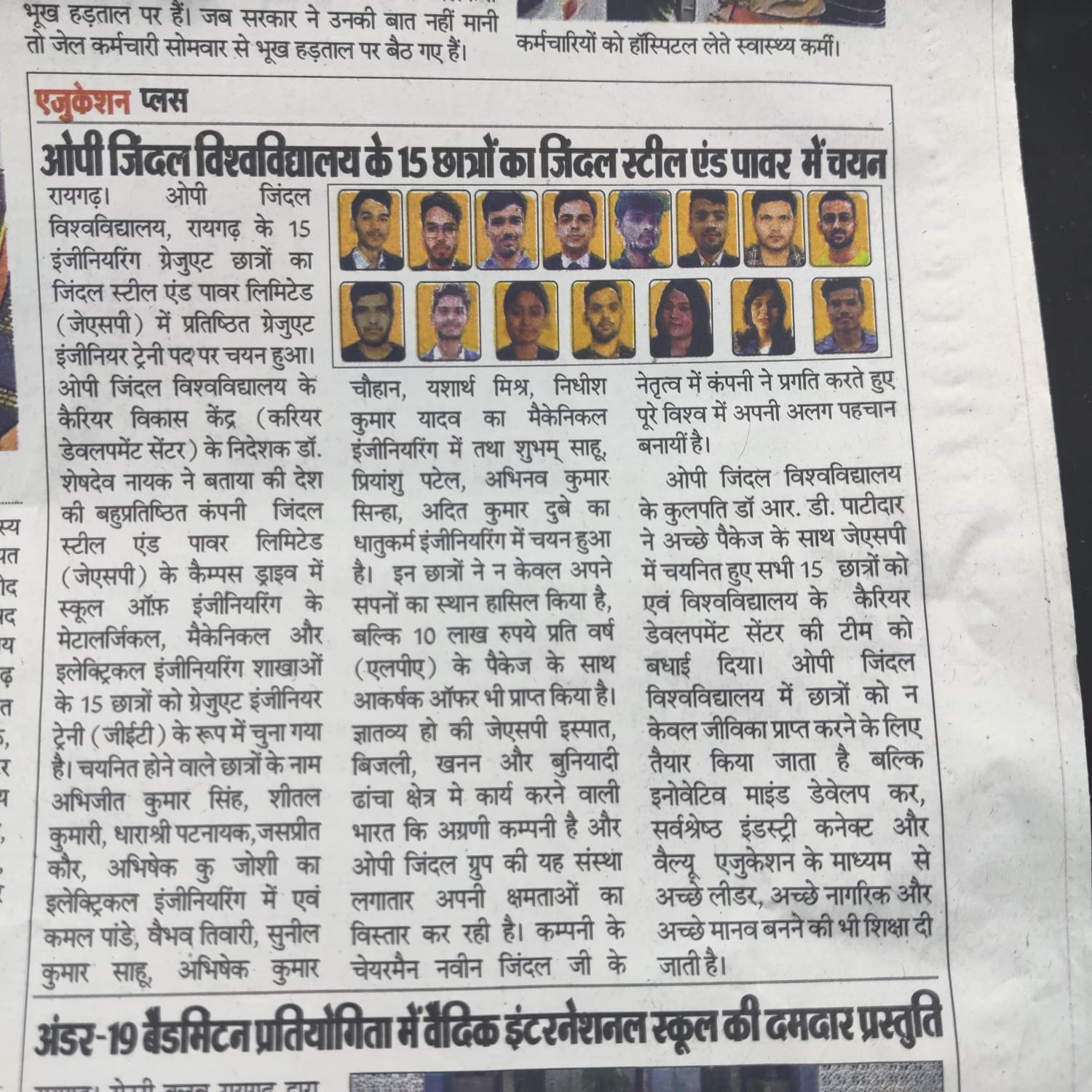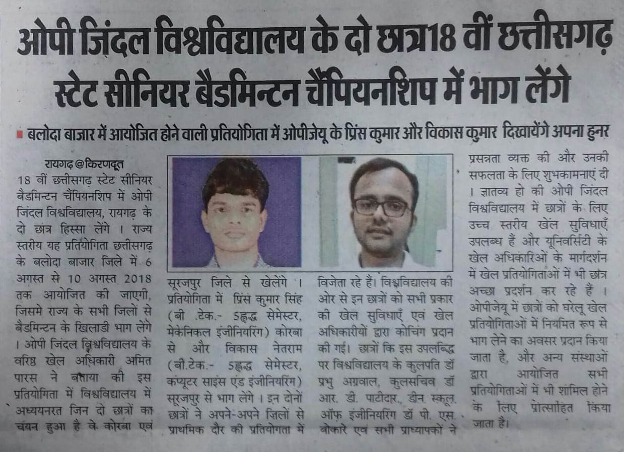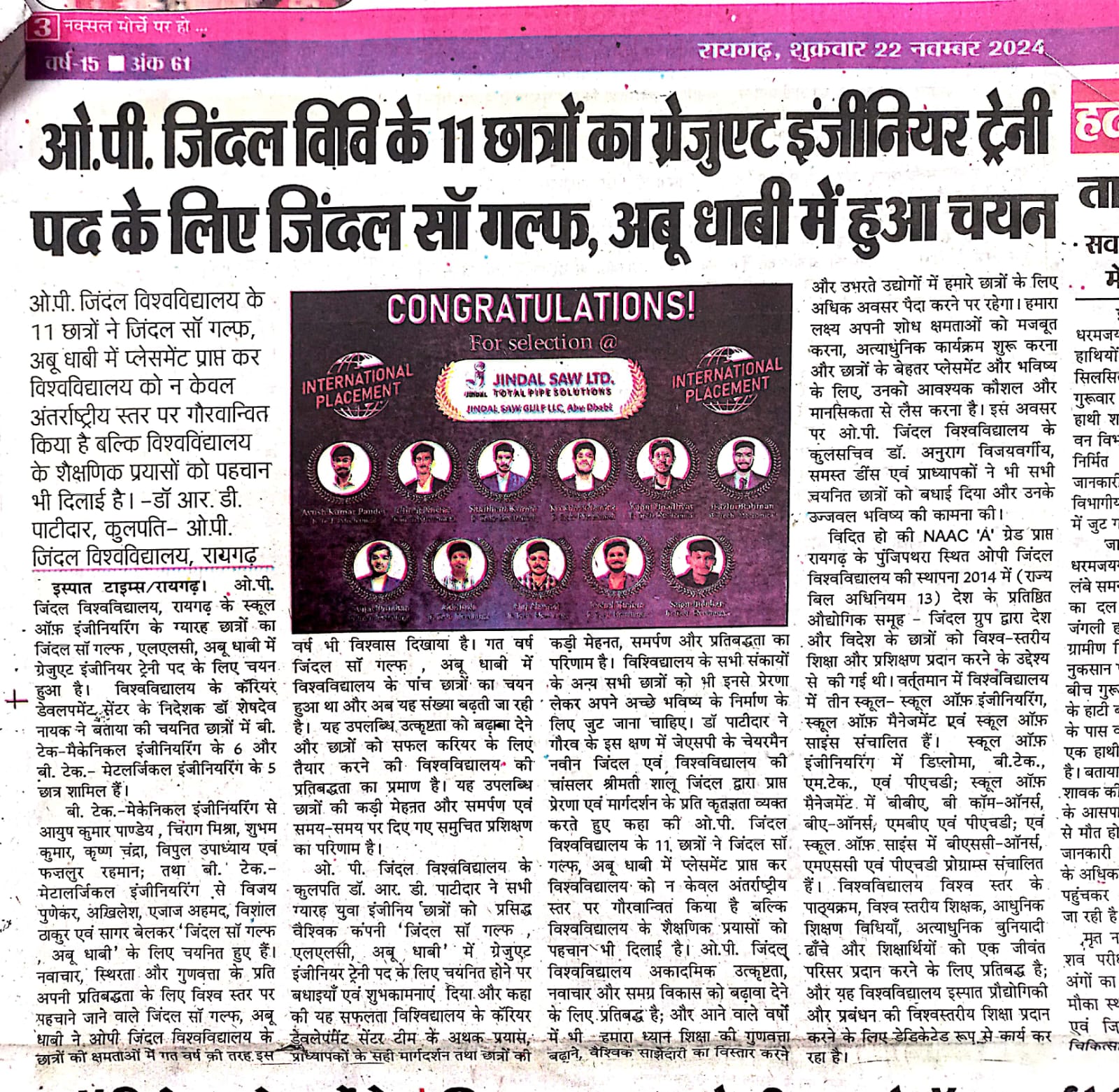 24 ENGINEERING STUDENTS OF JINDAL UNIVERSITY SELECTED IN JSPL KRANTIKARI,