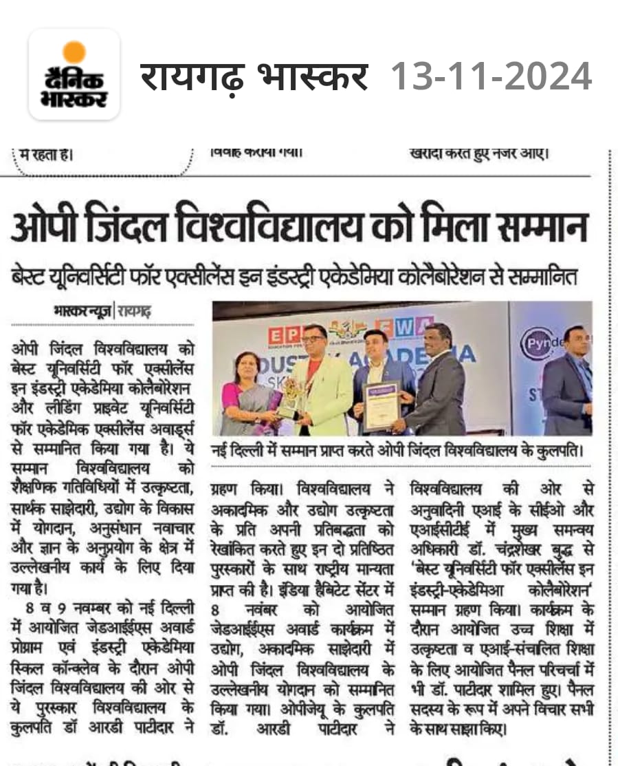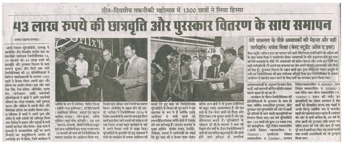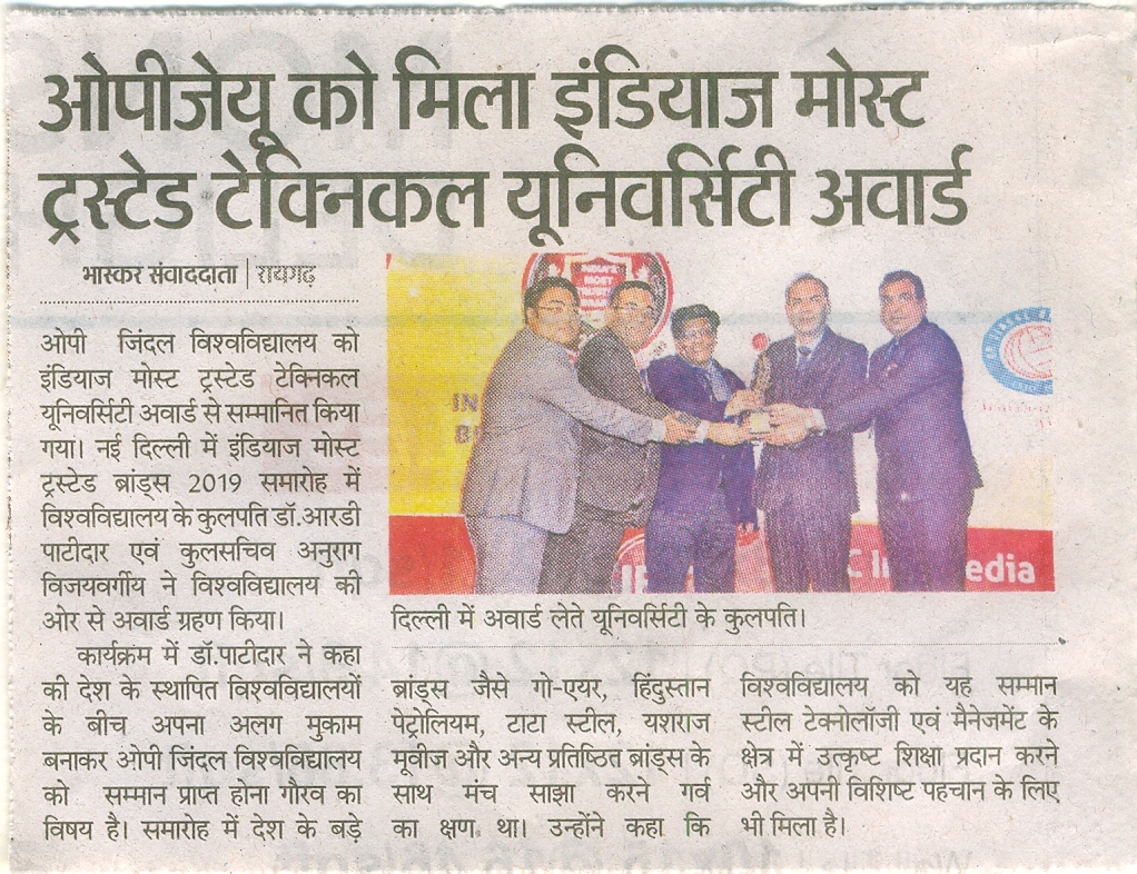 INDIA’S MOST TRUSTED TECHNICAL UNIVERSITY AWARD DAINIK BHASKAR,