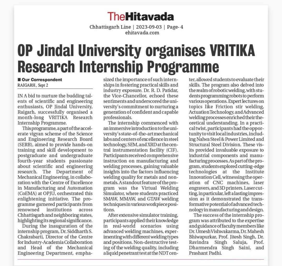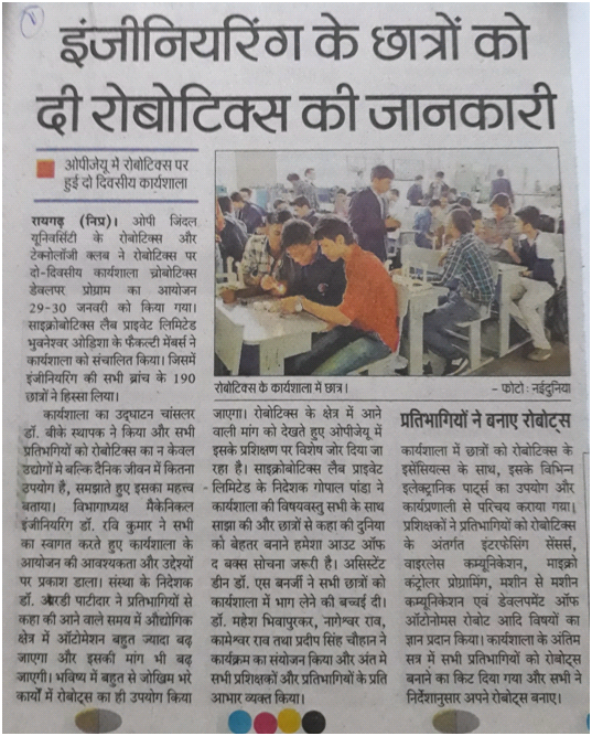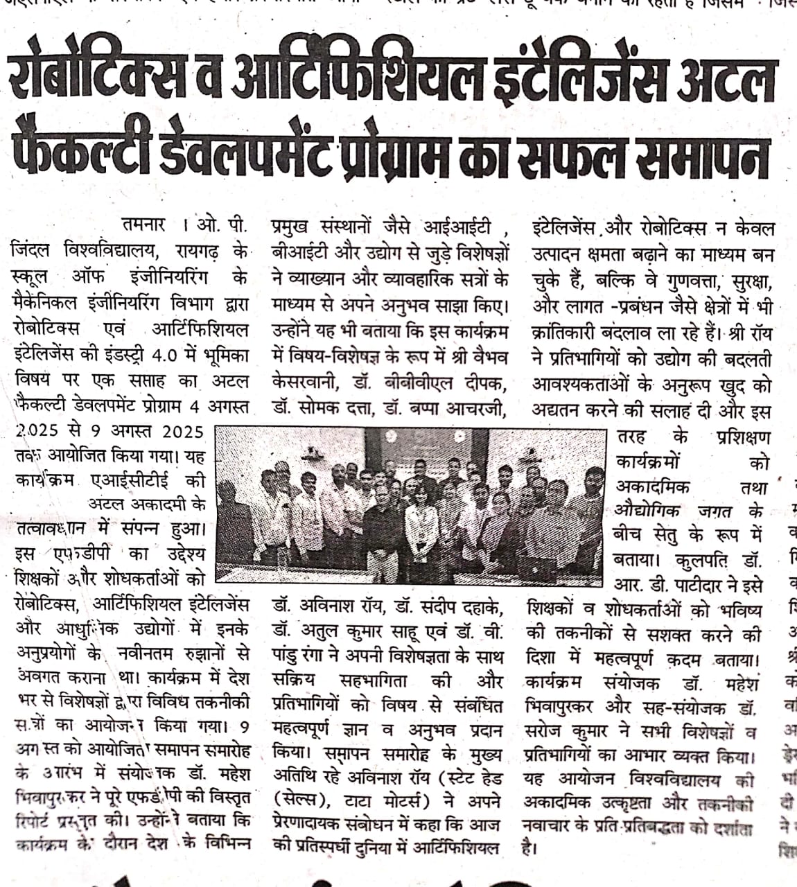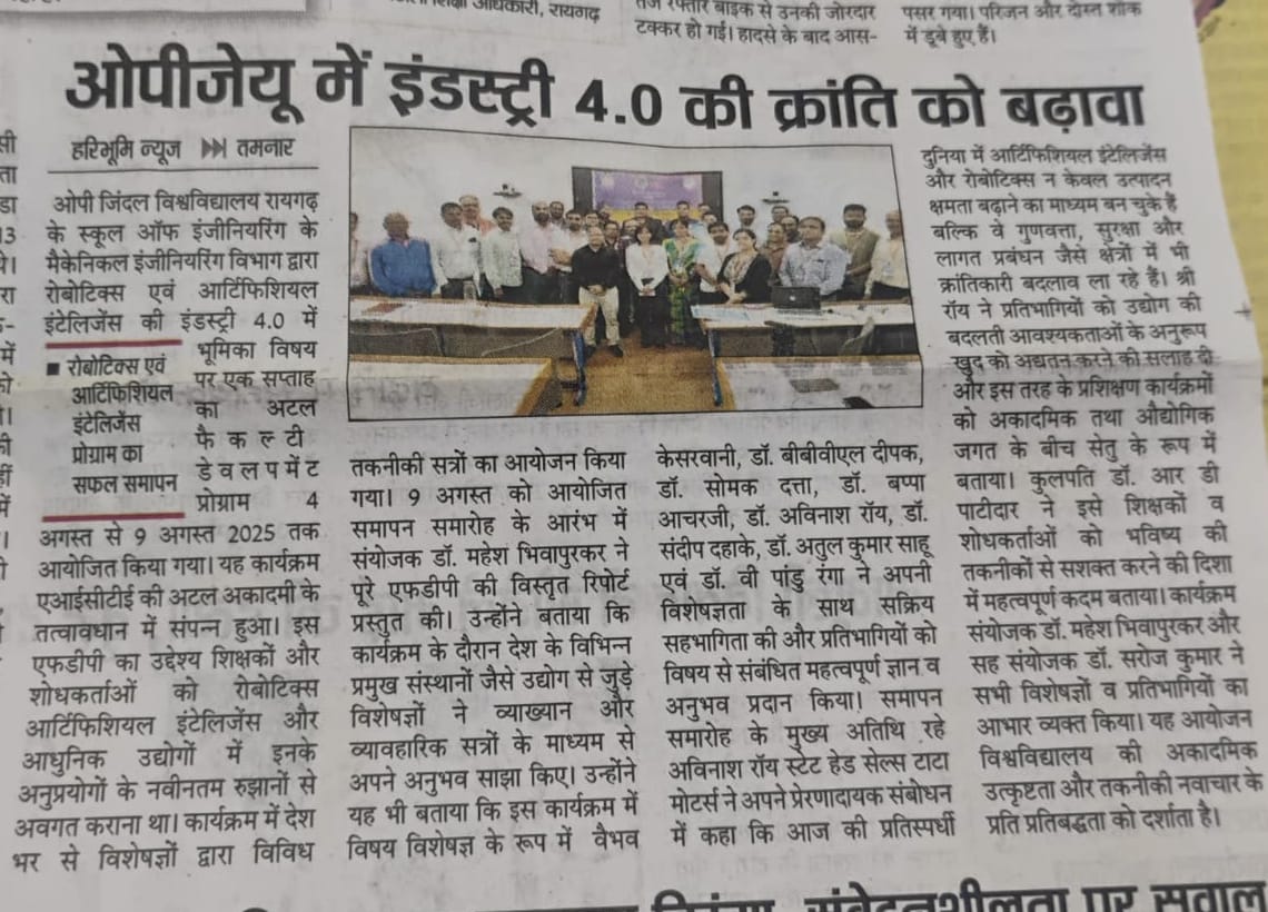 FIVE-DAY CNC MACHINING TECHNIQUE TRAINING AT OP JINDAL UNIVERSITY