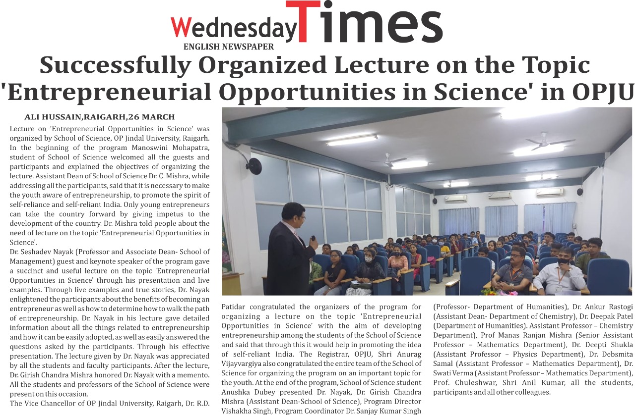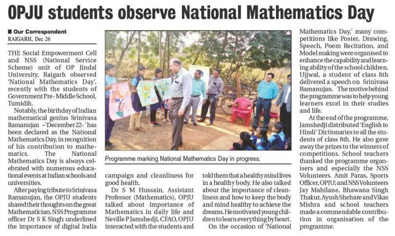 OPJU STUDENTS OBSERVED NATIONAL MATHEMATICS DAY