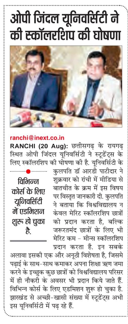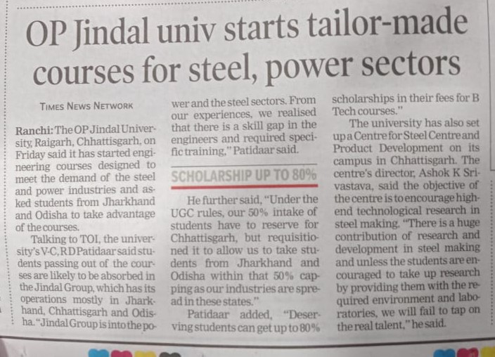 STUDENTS SELECTED FOR WORLD-CLASS EDUCATION OP JINDAL UNIVERSITY