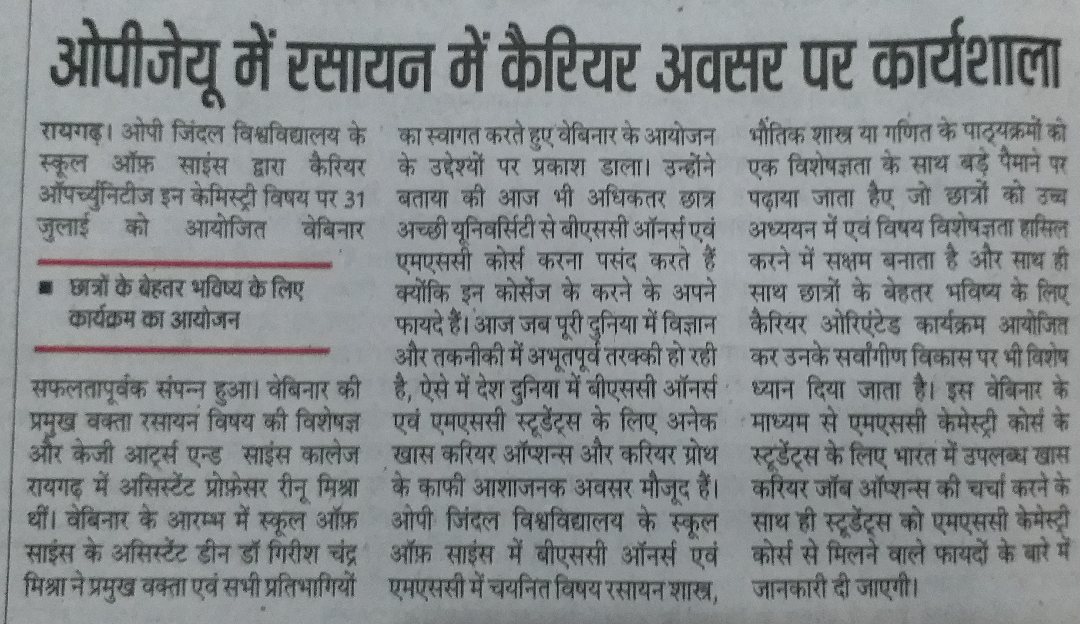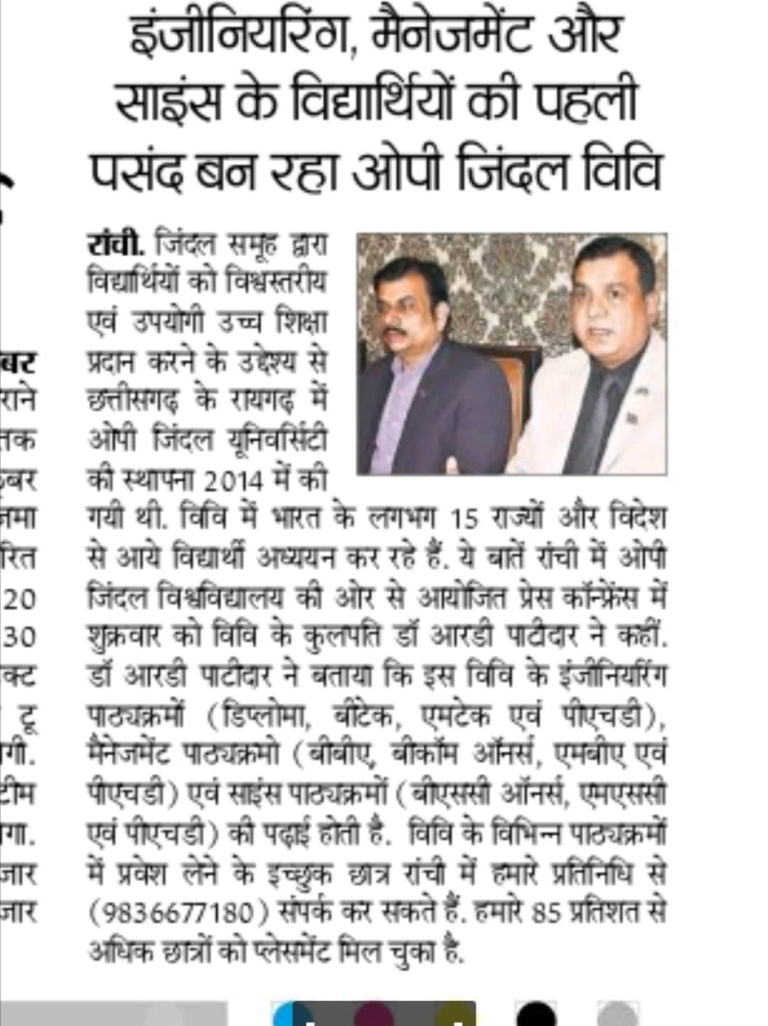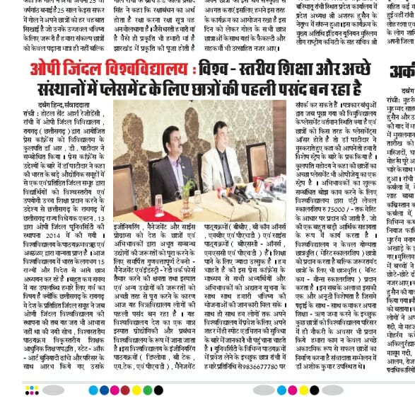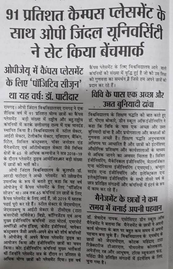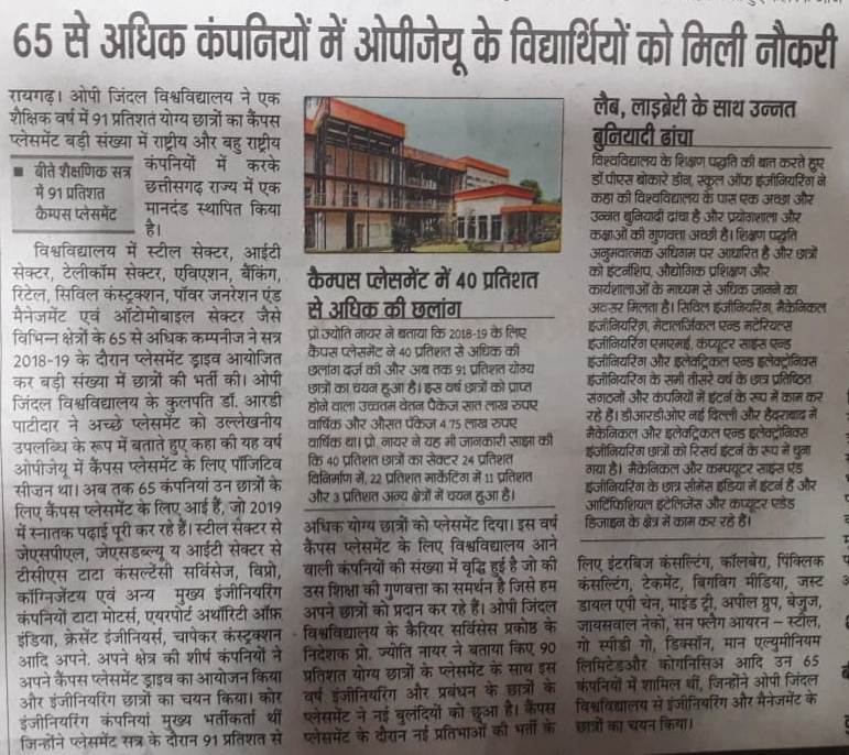 PLACEMENT COMPANY IN OPJU DAINIK BHASKAR,