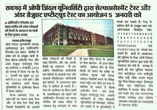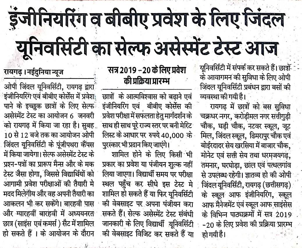 SELF ASSESMENT TEST 2019 ORGANIZED BY OP JINDAL UNIVERSITY NAYIDUNIA,