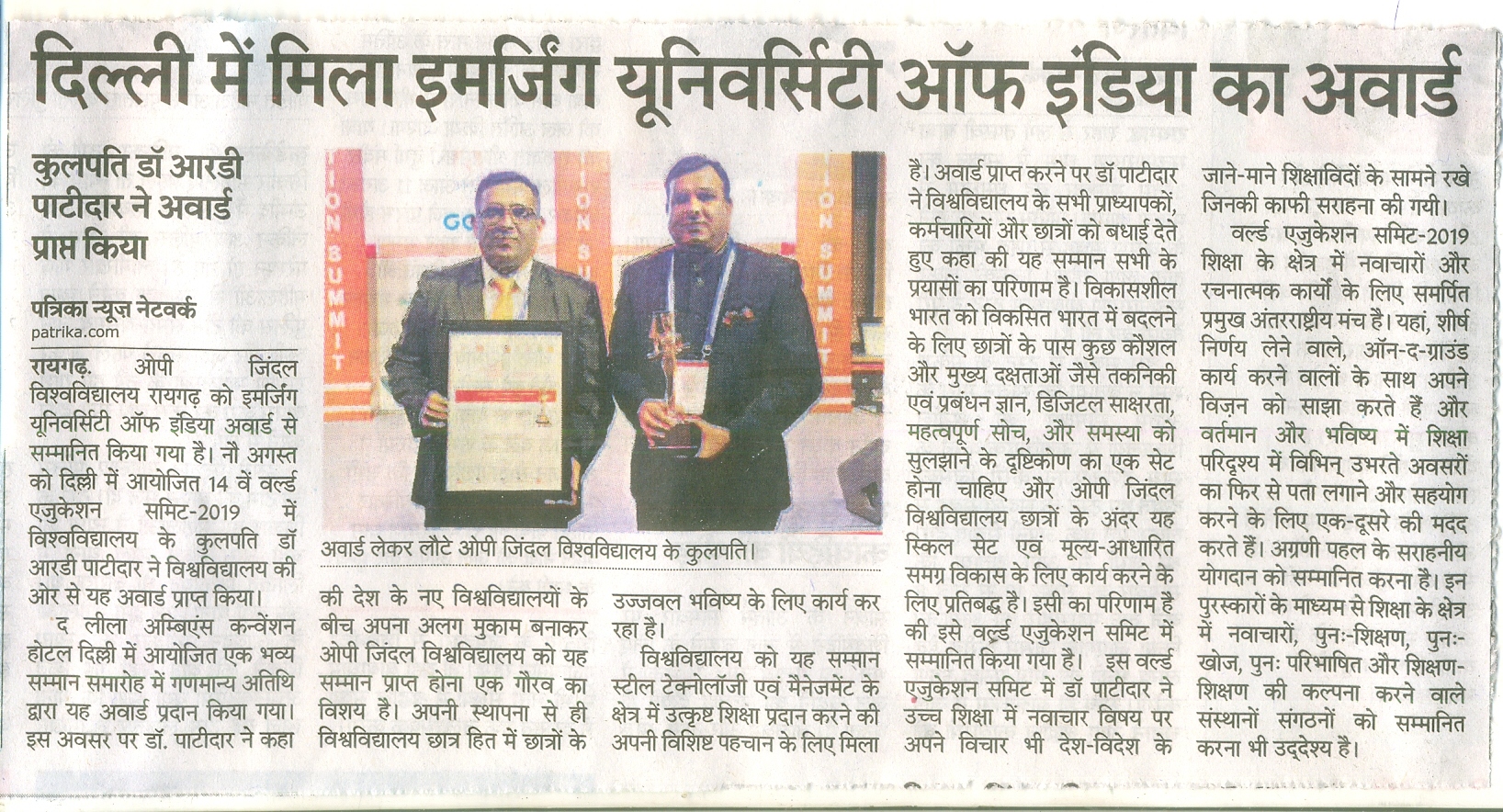 EMERGING UNIVERSITY OF INDIA AWARD PATRIKA,