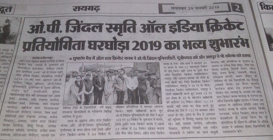 O P JINDAL MEMORIAL DUCE BALL CRICKET TOURNAMENT -2019 KIRANDUT,