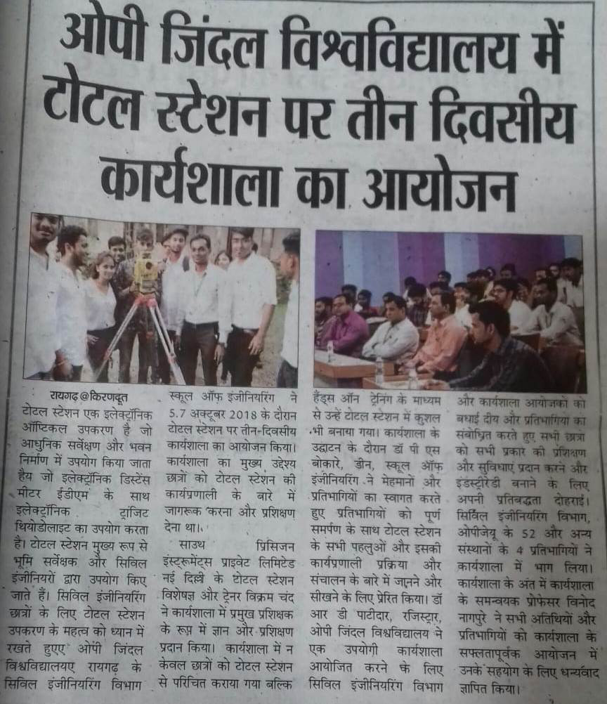 THREE DAYS WORKSHOP ON “TOTAL STATION " AT OP JINDAL UNIVERSITY