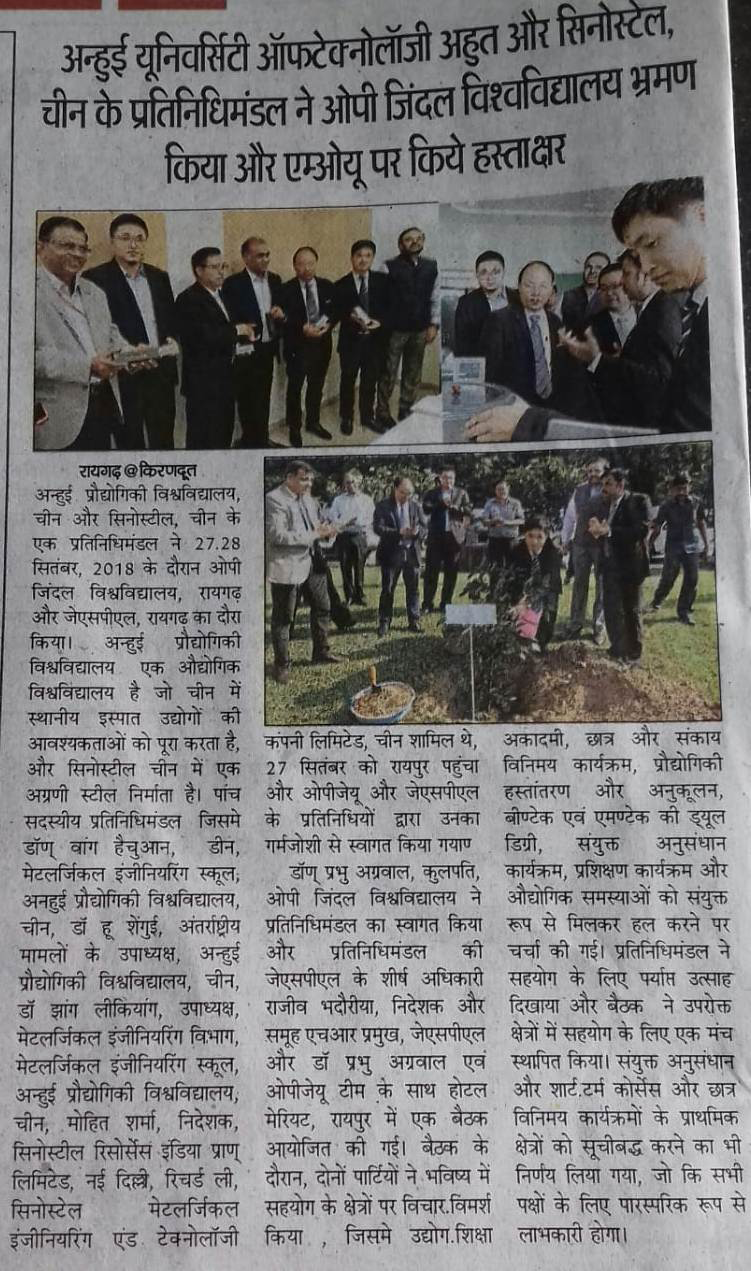 ANHUI UNIVERSITY OF TECHNOLOGY AND SINOSTEEL,CHINA MEMBERS VISITED OP JINDAL UNIVERSITY