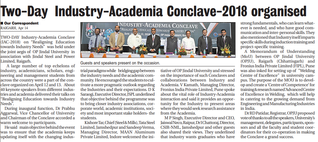 TWO-DAY INDUSTRY ACADEMIA CONCLAVE AT OPJU, RAIGARH