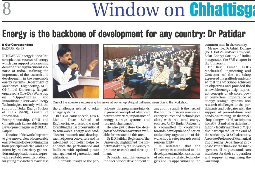 Workshop on “Opportunities and Innovations in Renewable Energy Technologies"
