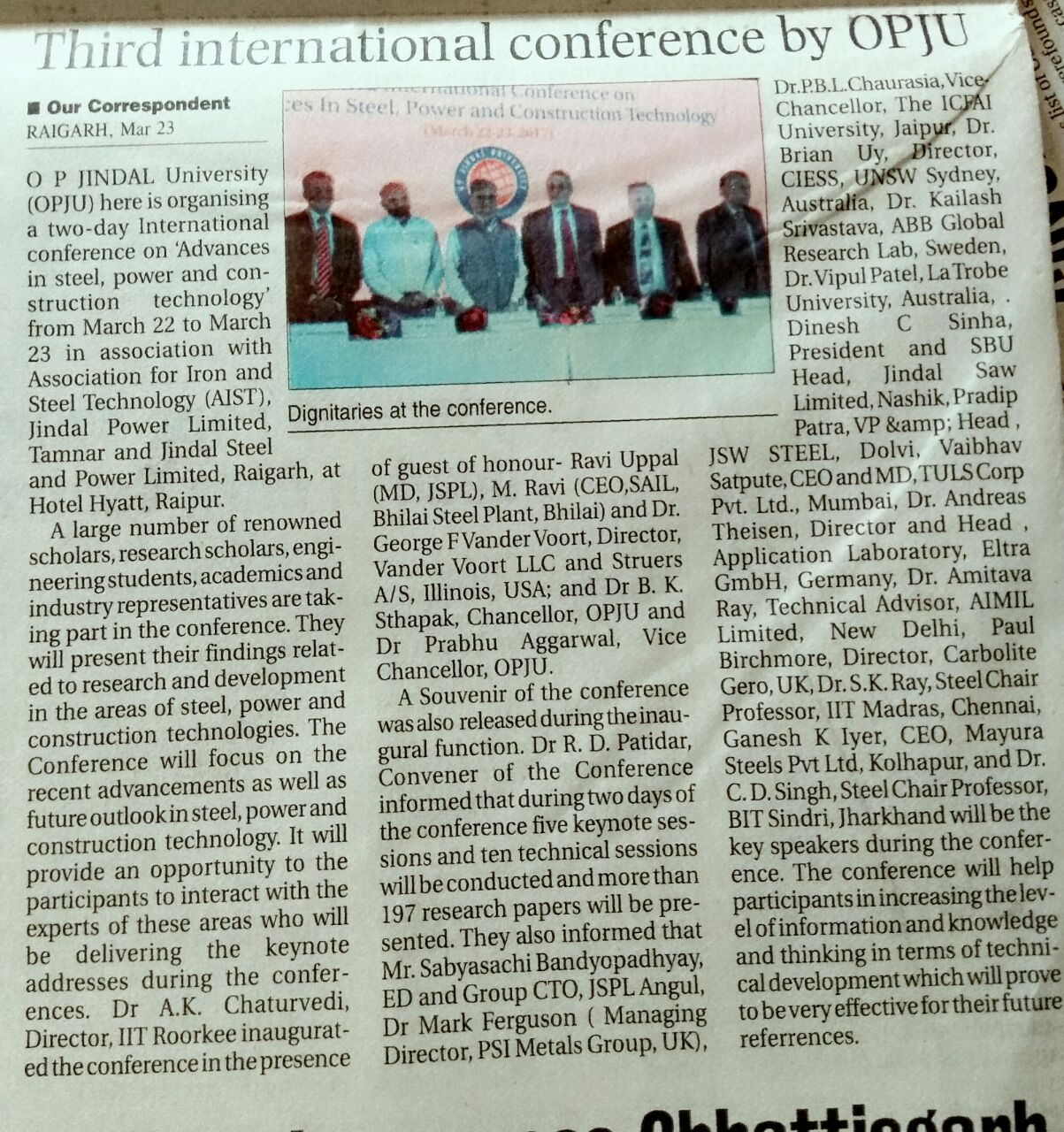 Advances in Steel, Power and Construction Technology" (ICASPCT-2019) NAIDUNIA,