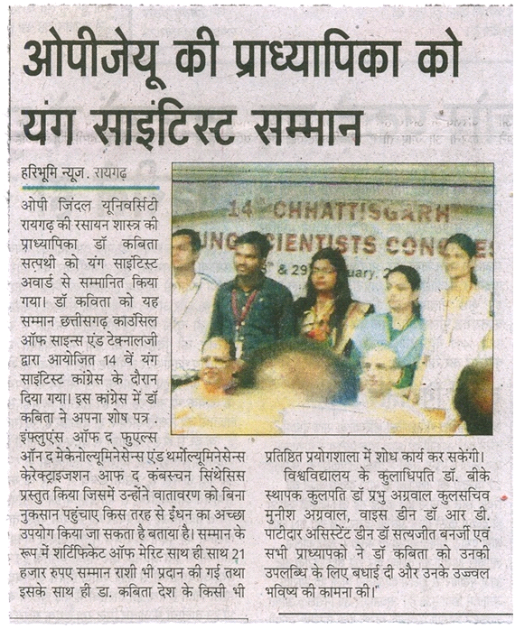 Professor gets Young Scientist Award in YOUNG SCIENTIST CONFERENCE